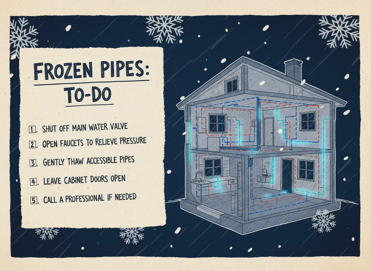 While frozen pipes can happen even in well-maintained homes, there are steps you can take to reduce the risk during cold spells. Simple habits such as keeping cabinet doors open under sinks to allow warmer air to circulate, letting a small stream of water run on extremely cold nights, or maintaining consistent home heating can make a big difference.